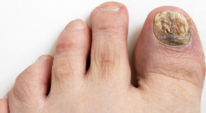 Nail fungus (Athlete’s foot) occurs when a fungus infects the areas between your toes and the skin of your feet.